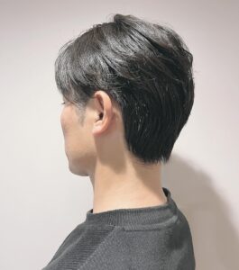 毛先に緩くパーマをかけて、後ろへ流しやすいスタイル👍